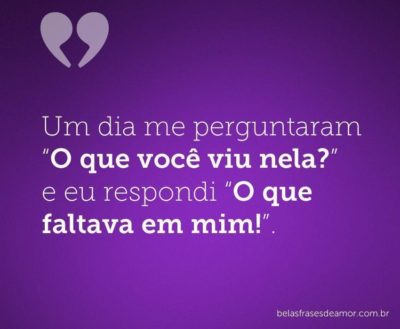 Um dia me perguntaram "O que você viu nela?" e eu respondi "O que faltava em mim!".