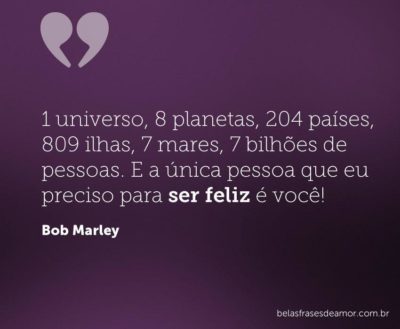 1 universo, 8 planetas, 204 países, 809 ilhas, 7 mares, 7 bilhões de pessoas. E a única pessoa que eu preciso para ser feliz é você!