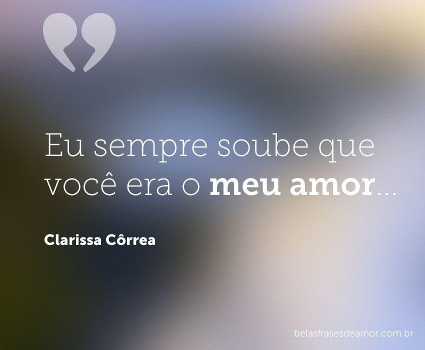 Eu sempre soube que você era o meu amor. De alguma estranha forma eu já sabia. Assim que te vi alguma coisa em mim mudou. Meu sorriso, meu jeito de mexer no cabelo, minha forma de olhar a vida. Quando a sua mão tocou meus dedos um sentimento tranquilo invadiu o meu peito. Esse mesmo sentimento du...