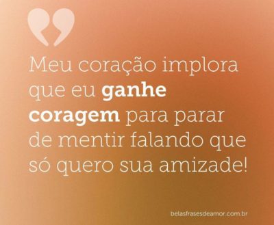 Meu coração implora que eu ganhe coragem para parar de mentir falando que só quero sua amizade!