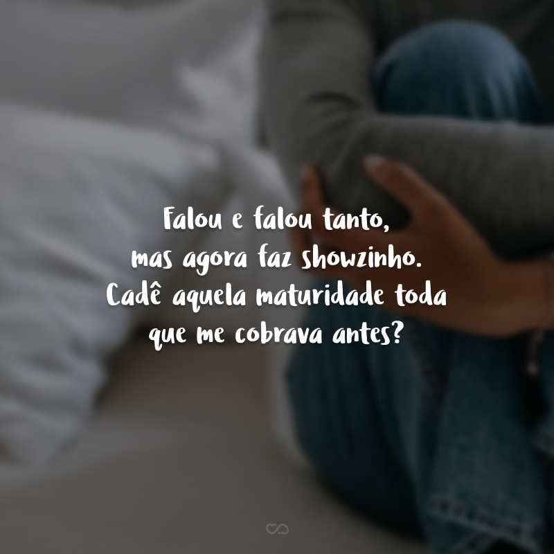 Falou e falou tanto, mas agora faz showzinho. Cadê aquela maturidade toda que me cobrava antes?