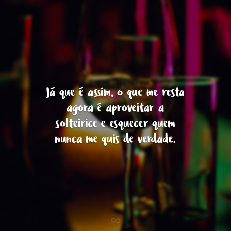Já que é assim, o que me resta agora é aproveitar a solteirice e esquecer quem nunca me quis de verdade.