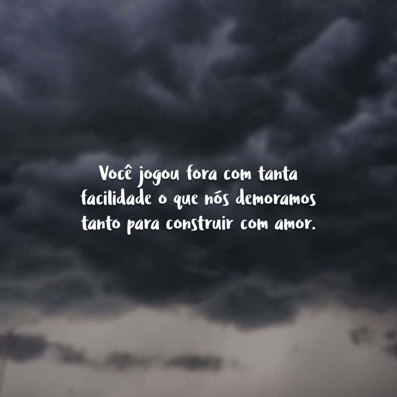 Você jogou fora com tanta facilidade o que nós demoramos tanto para construir com amor.